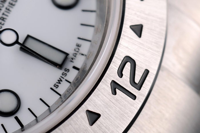 Bezel: acero inoxidable cepillado bisel negro calado con número arábigo 24 horas Tipo: markers