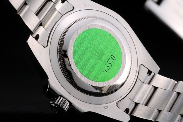 Volver: Acero inoxidable complemento de vuelta con verde Rolex sticker