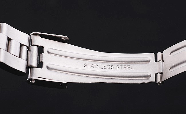 Bezel: acero inoxidable pulido con grabado números arábigos que marca el minutes