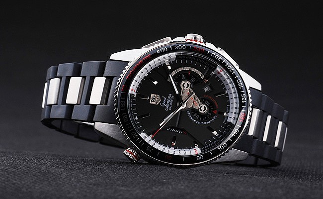 Crown: pulido corona calado de acero inoxidable con logo TAG Heuer más dos coronas adicionales a cada lado y una en el Espesor superior opuesta corner