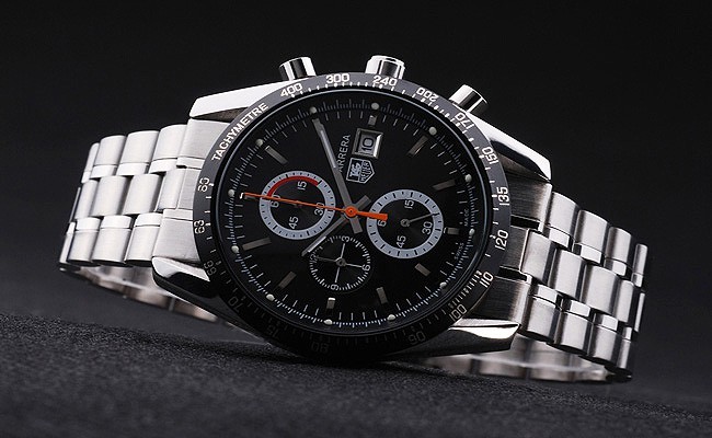 Crown: pulido corona calado de acero inoxidable con logo TAG Heuer más dos coronas adicionales, uno a cada side