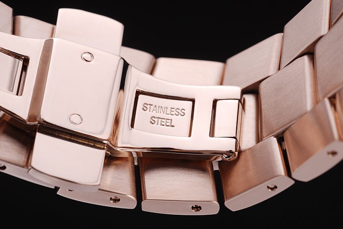 Bracelet de acero inoxidable: 18k chapado en oro rosa pulsera de eslabones de acero inoxidable con pulsador oculto Longitud clasp