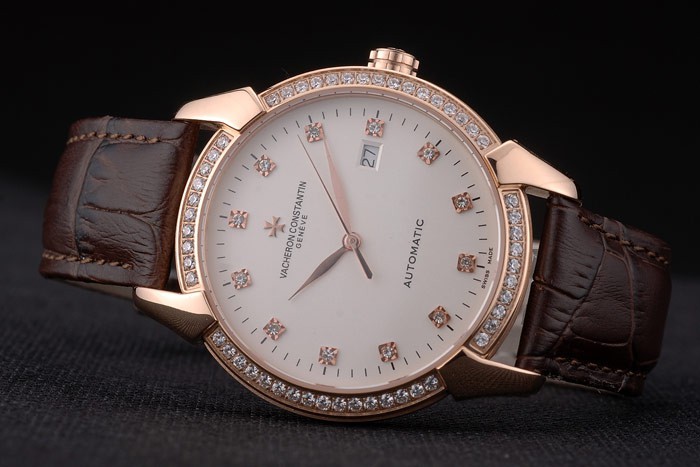 Crown: rosa de 18 quilates chapado en oro de la corona calado con Vacheron logo